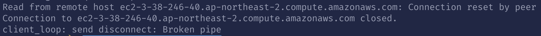Read from remote host ec2-3-38-246-40.ap-northeast-2.compute.amazonaws.com: Connection reset by peer