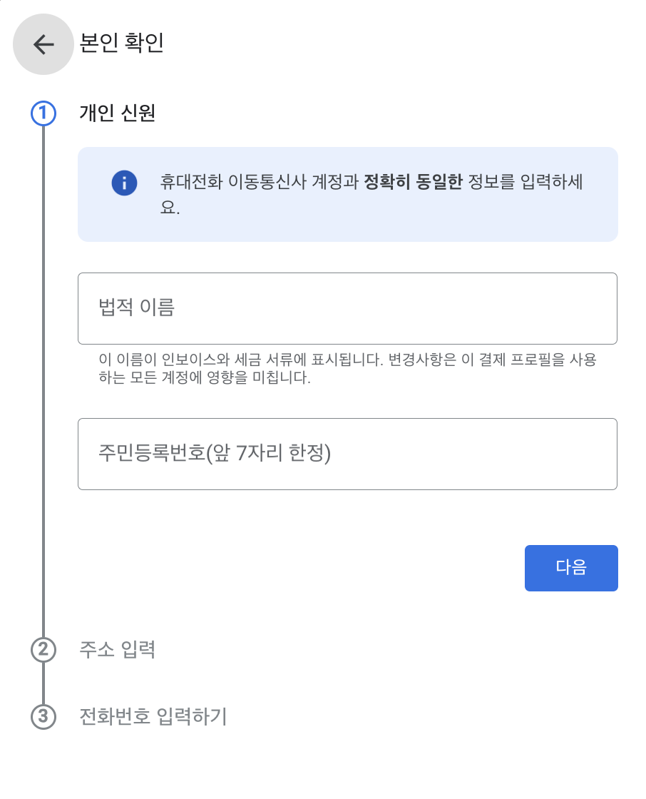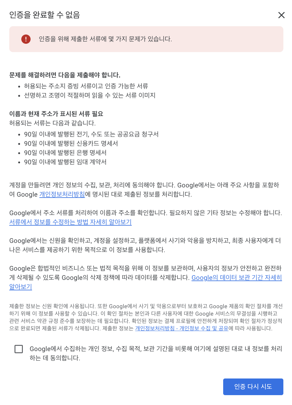 주소가 제대로 명시되지 않은 서류를 제출해서 인증이 완료되지 않았다.😅😅