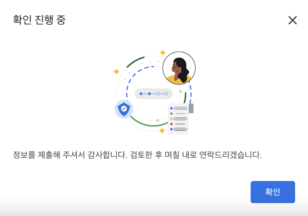 2시간 안에 바로 구글님이 인증을 완료해주셨다!!!👏👏👏