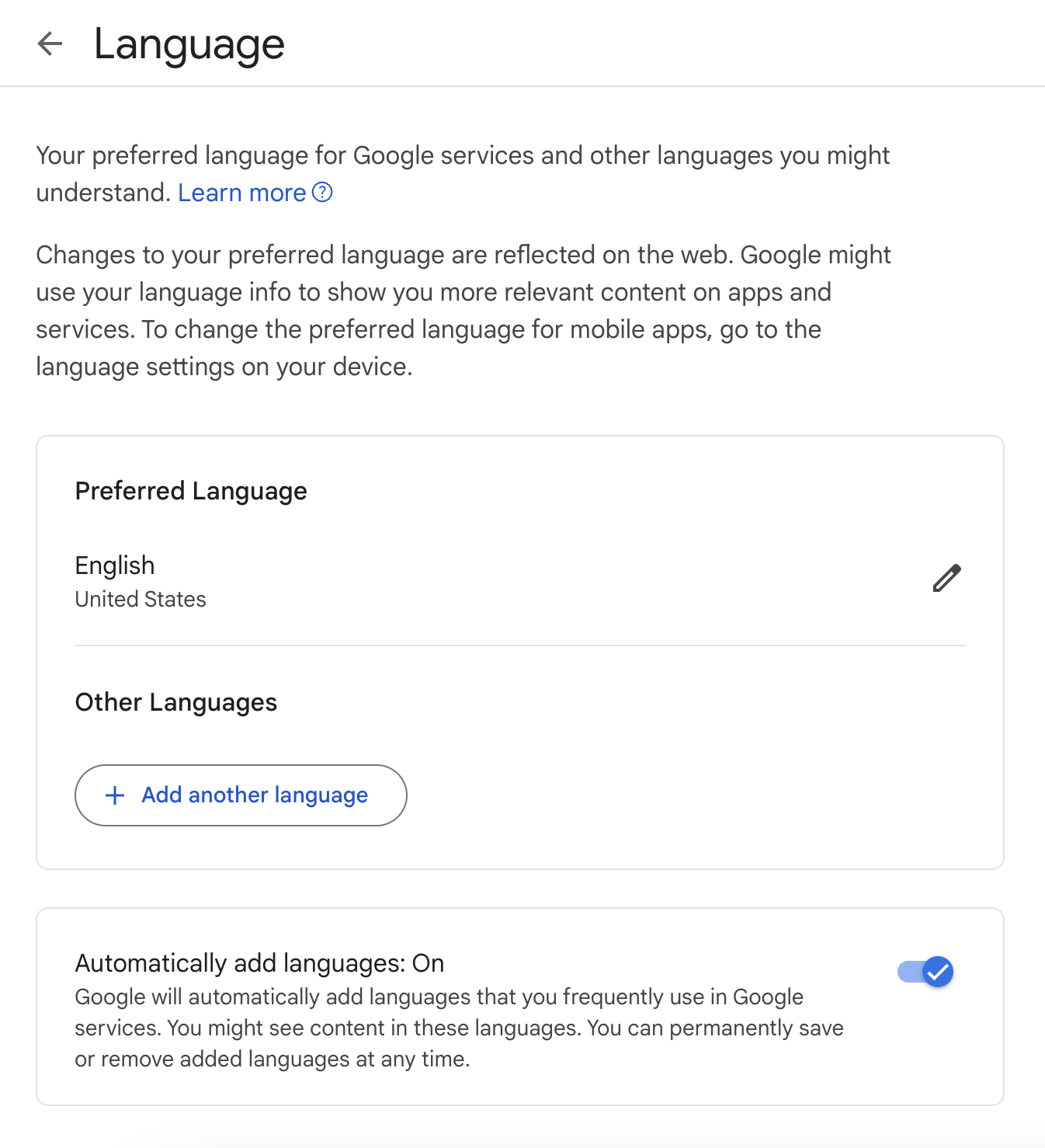 Personal info - Language 클릭
