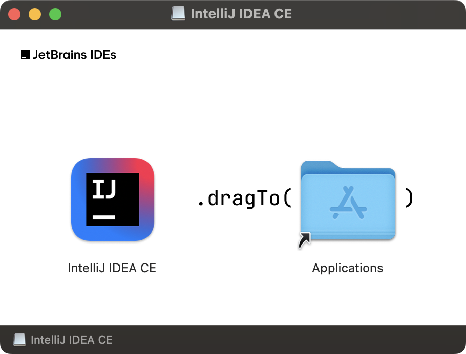 설치 화면에서 IntelliJ IDEA 아이콘을 애플리케이션 폴더로 드래그 앤 드롭하여 설치를 완료해준다.