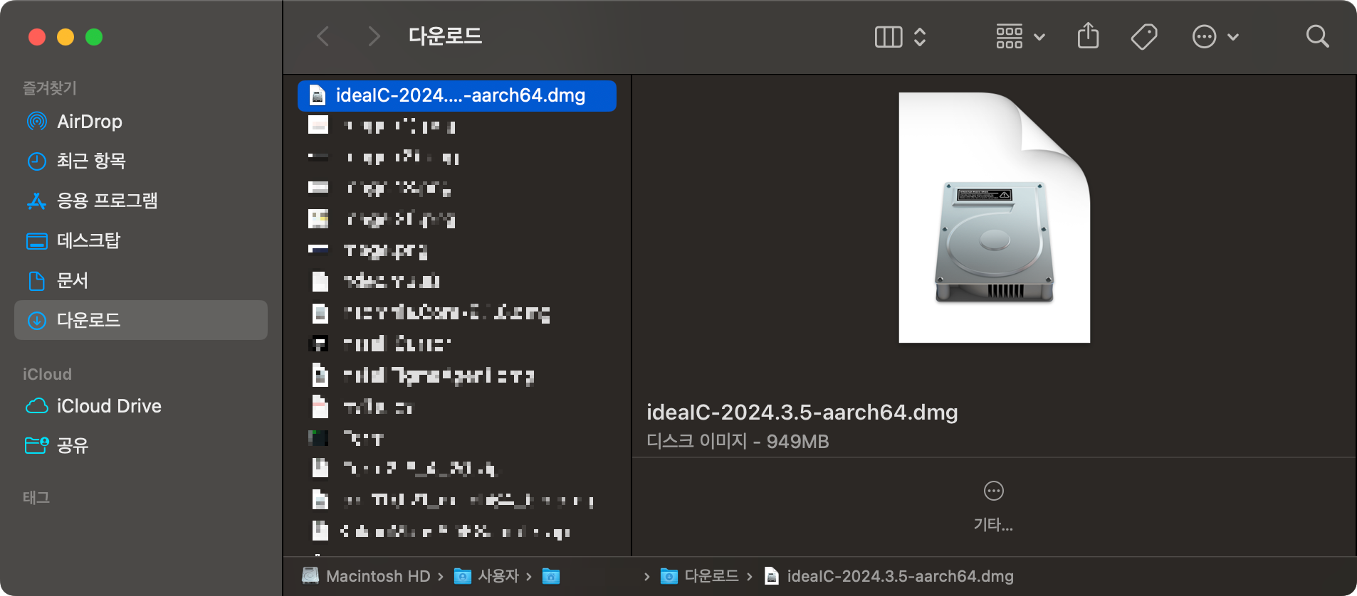 다운로드가 완료되면 .dmg 파일을 실행한다.