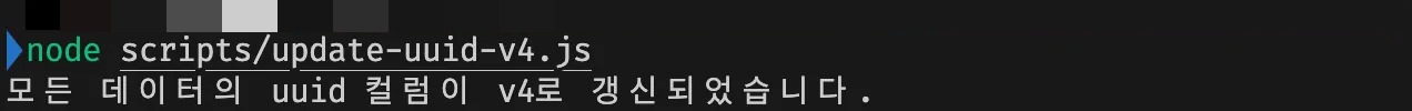 console.log('모든 데이터의 uuid 컬럼이 v4로 갱신되었습니다.');