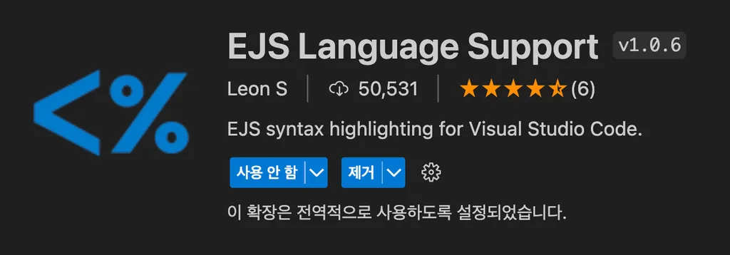 4️⃣ VSCode에서 EJS Language Support 플러그인 설치