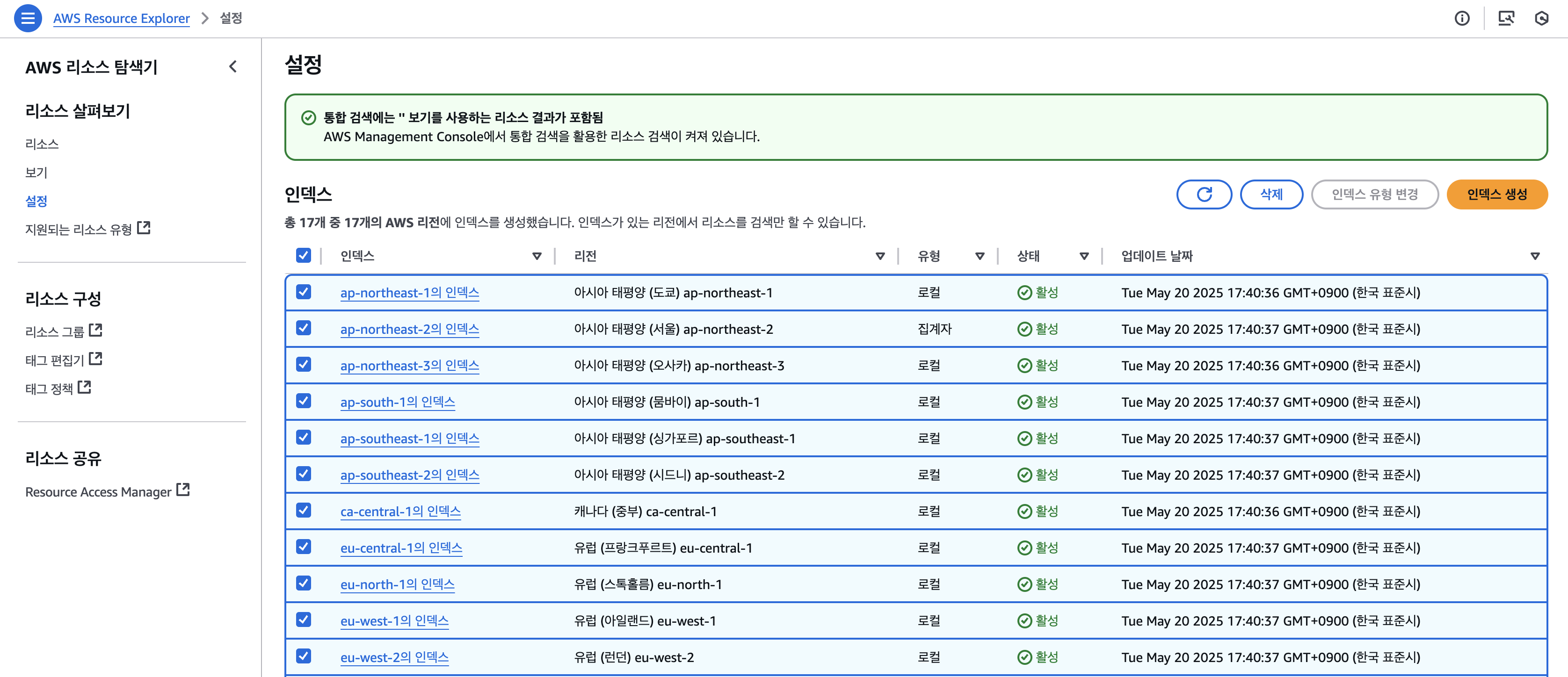 AWS Resource Explorer(리소스 탐색기)를 사용하면 모든 리전의 AWS 리소스를 한 눈에 검색하고 탐색할 수 있다.