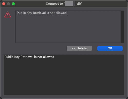 DBeaver에 MySQL을 연결해 사용하고 있었는데 어느날 접속하니 “Public Key Retrieval is not allowed” 에러가 났다.