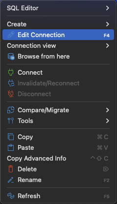 DBeaver에 연결중인 DB - SQL Editor - Edit Connection 경로로 이동