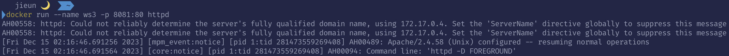 #이 나오면 지금부터 내리는 명령은 ws1 컨테이너를 대상으로 내려지는 명령이다.