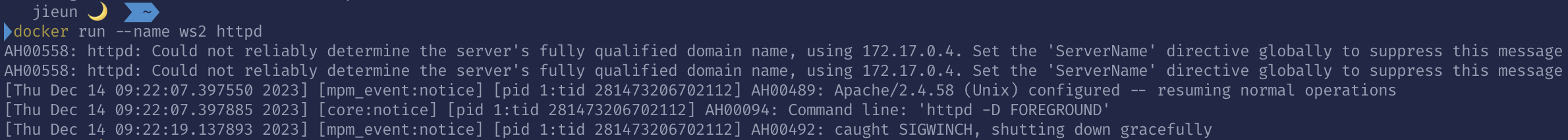 명령어 docker stop ws2 후에 docker rm ws2 를 하면 삭제된다.