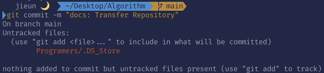 이 오류는 .DS_Store와 같은 untracked 파일이 있어서 커밋을 할 수 없다는 뜻이다.
