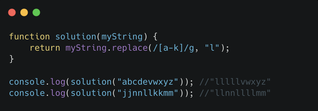 알파벳 순서에서 "l"보다 앞서는 모든 문자를 "l"로 교체