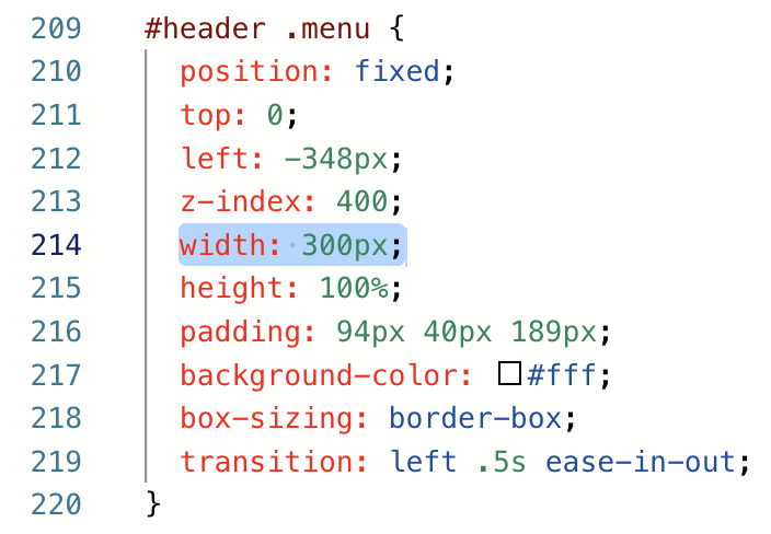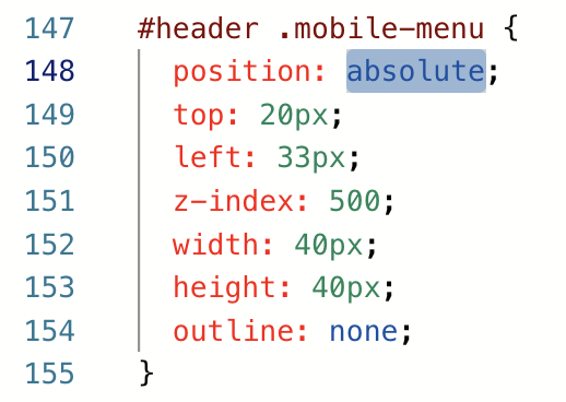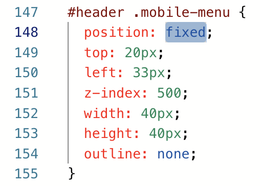 CSS #header .mobile-menu 를 검색해서 찾고 position을 absolute → fixed 로 수정해준다.