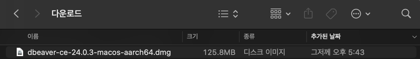 다운로드가 완료되면 dmg 파일을 더블 클릭한다.