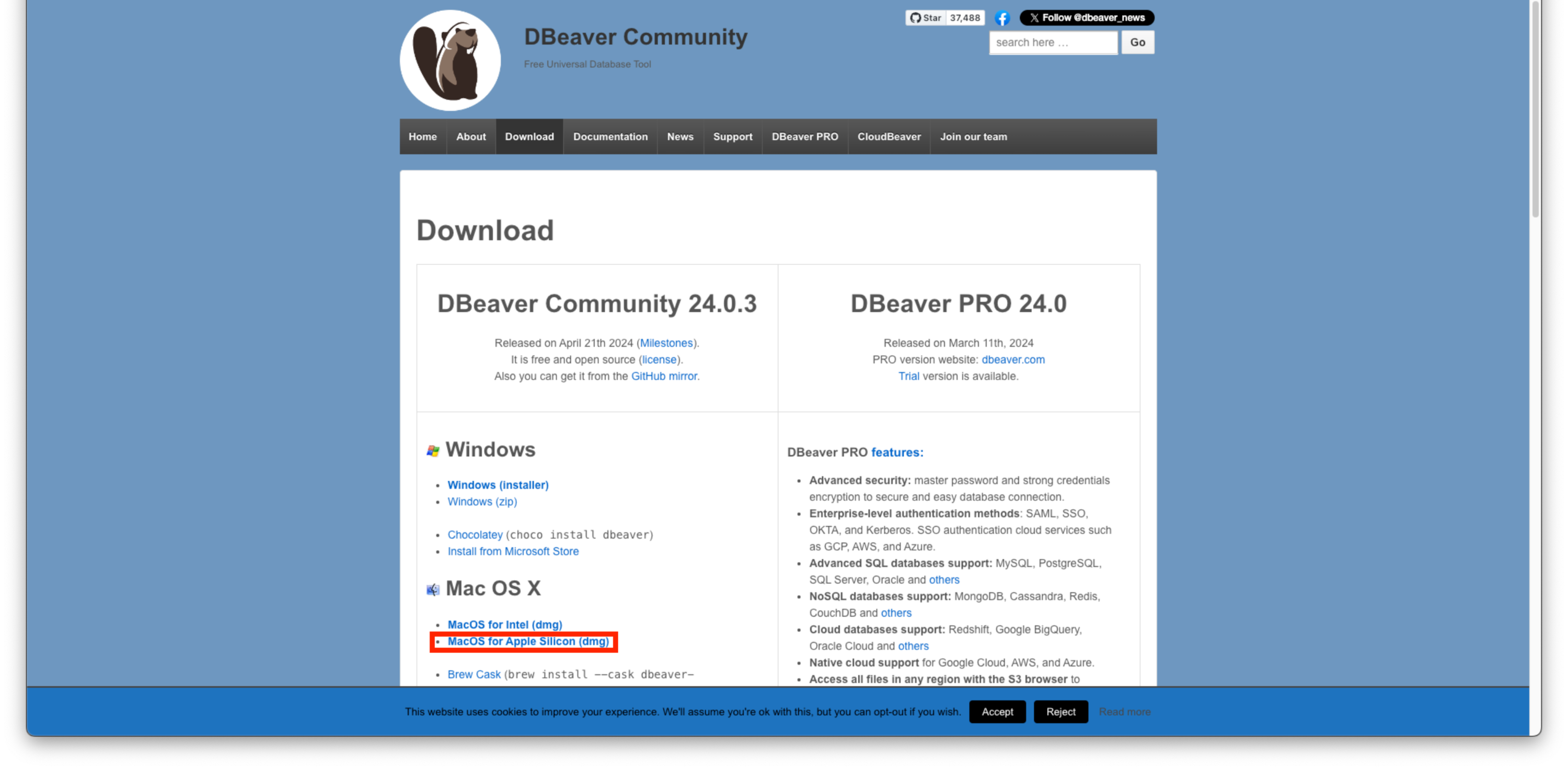 DBeaver 사이트(https://dbeaver.io/)에서 운영 체제에 맞는 버전을 다운로드한다.