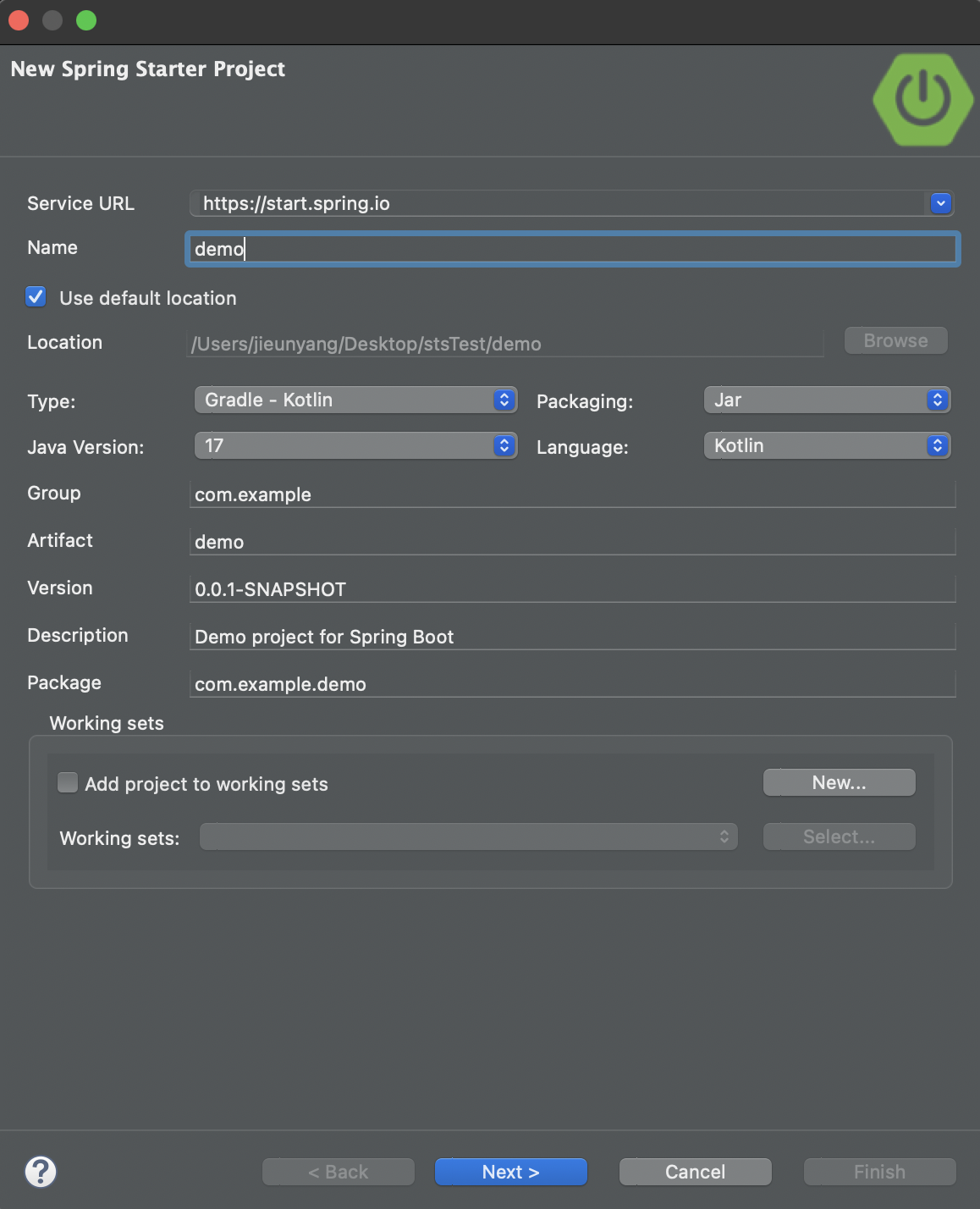 이제 STS를 사용하여 Kotlin 프로젝트를 설정해보자