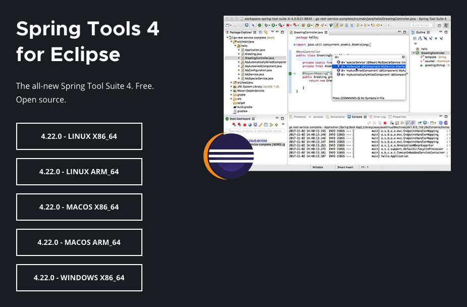 STS는 JVM(Java Virtual Machine)에서 실행되는 언어(Java, Kotlin)로 개발하기 위한 통합 개발 환경(IDE)이다.