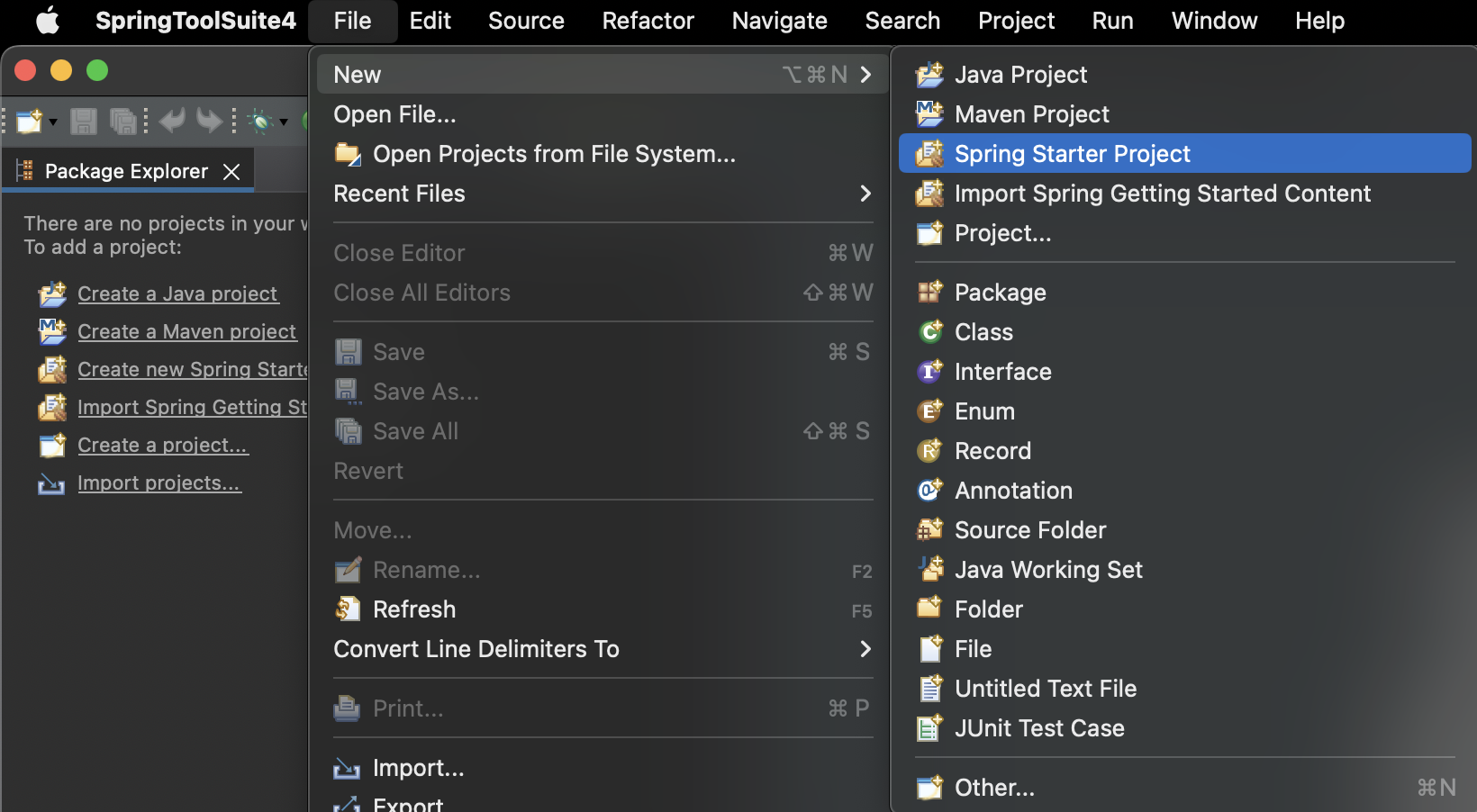 File - New - Spring Starter Project 경로로 프로젝트를 생성한다.