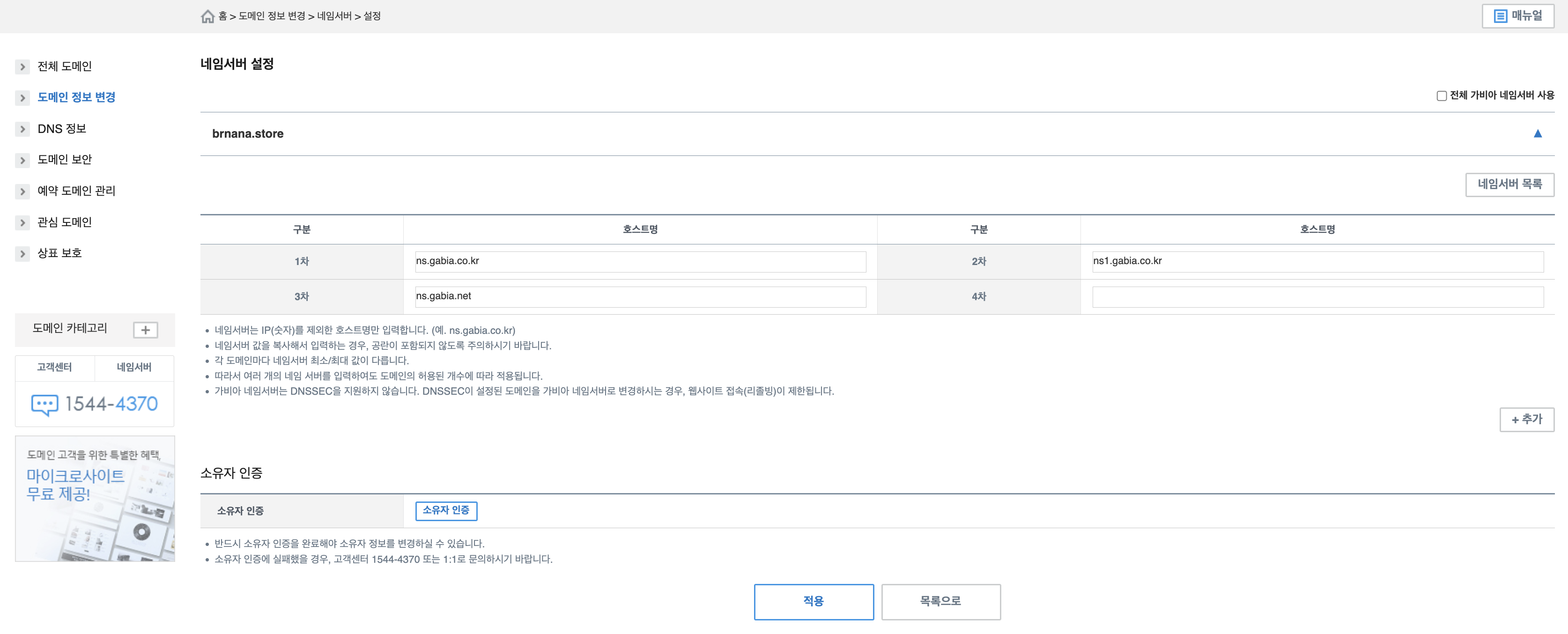 네임서버 설정 클릭