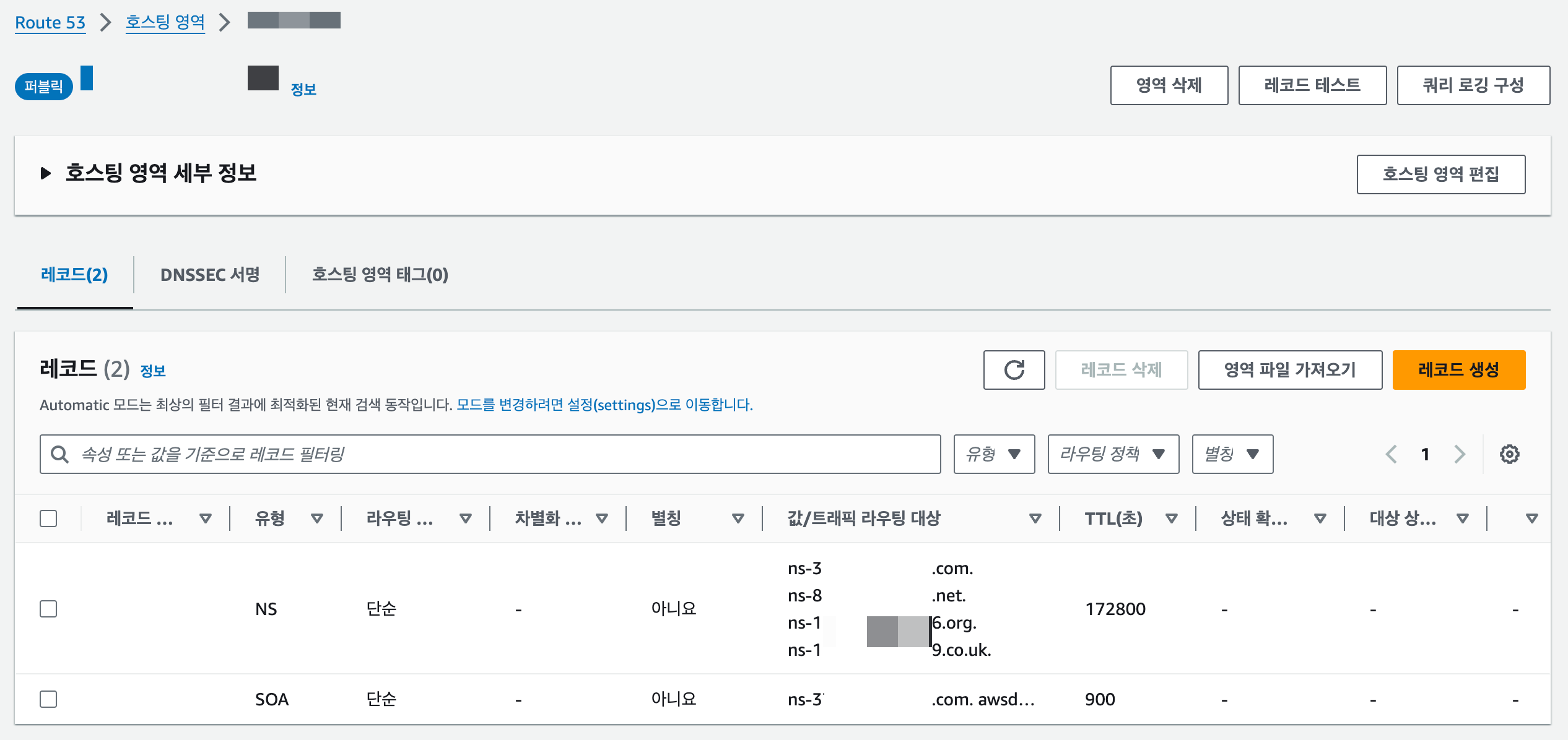 Route 53 - 호스트 영역
