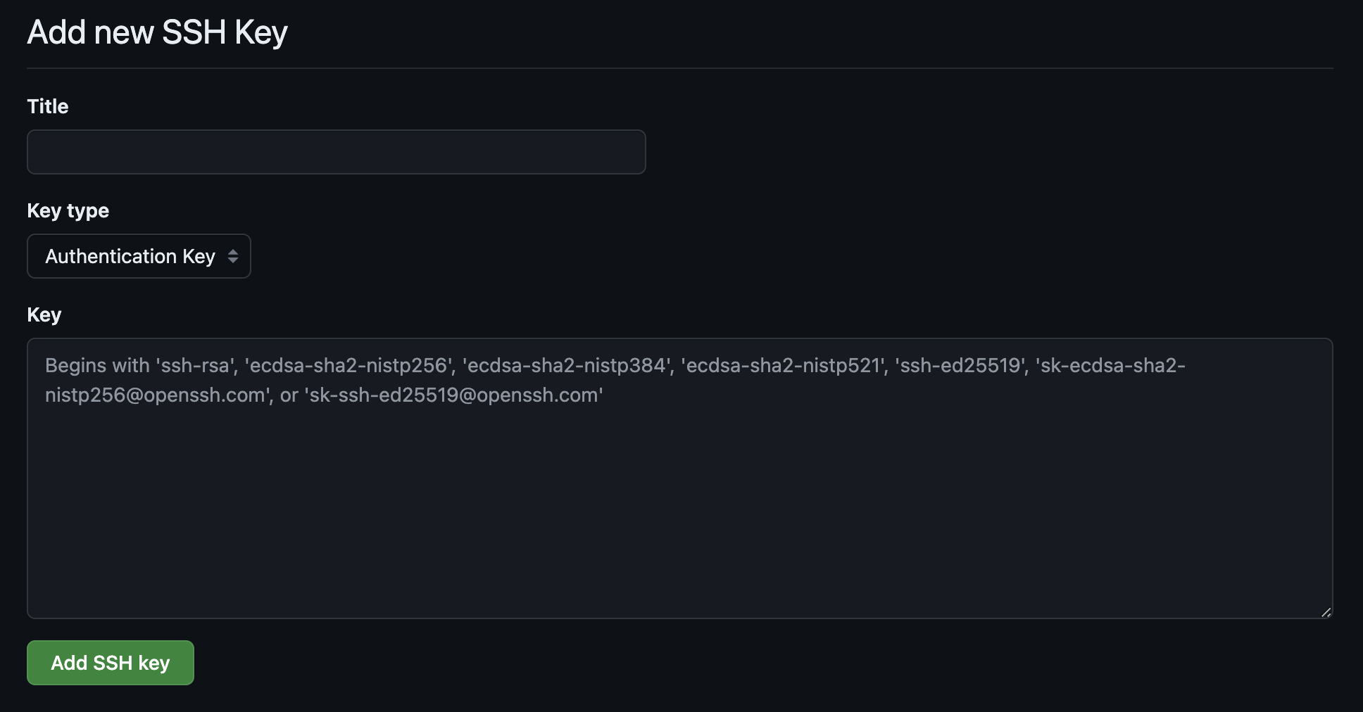 복사했던 SSH 퍼블릭 키를 Key 란에 붙여넣기 - Add SSH key 버튼 클릭