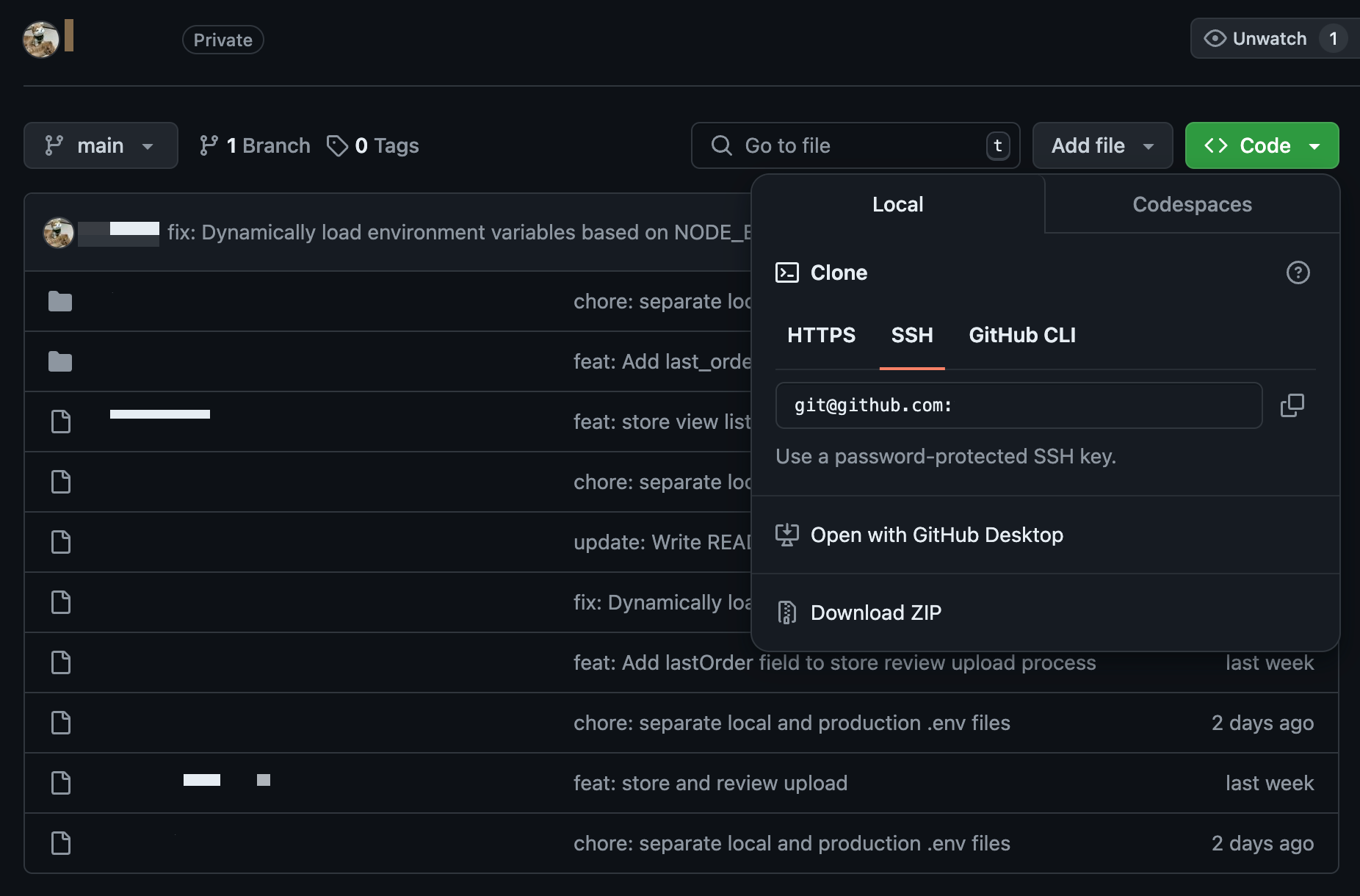 clone받을 프로젝트의 SSH 주소 복사