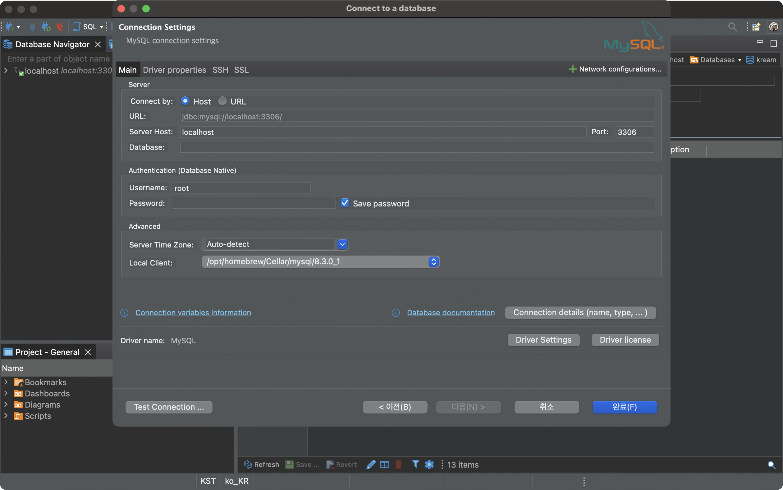 Password: DB 접속 비밀번호