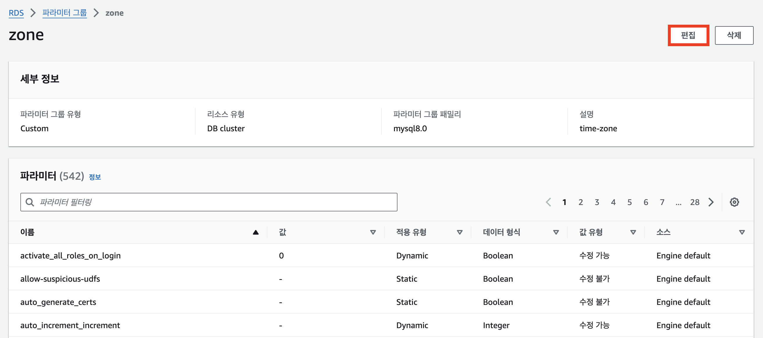 파라미터 그룹이 수정되었는지 확인하기 위해 저장한 변경 사항이 제대로 반영되었는지 확인한다.