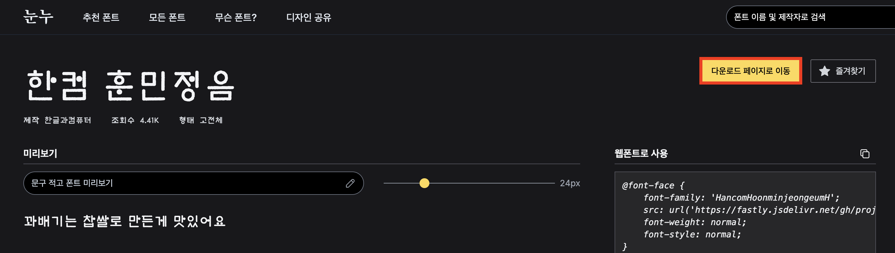 필자는 눈누를 활용했다. 무료 폰트가 다양하다.