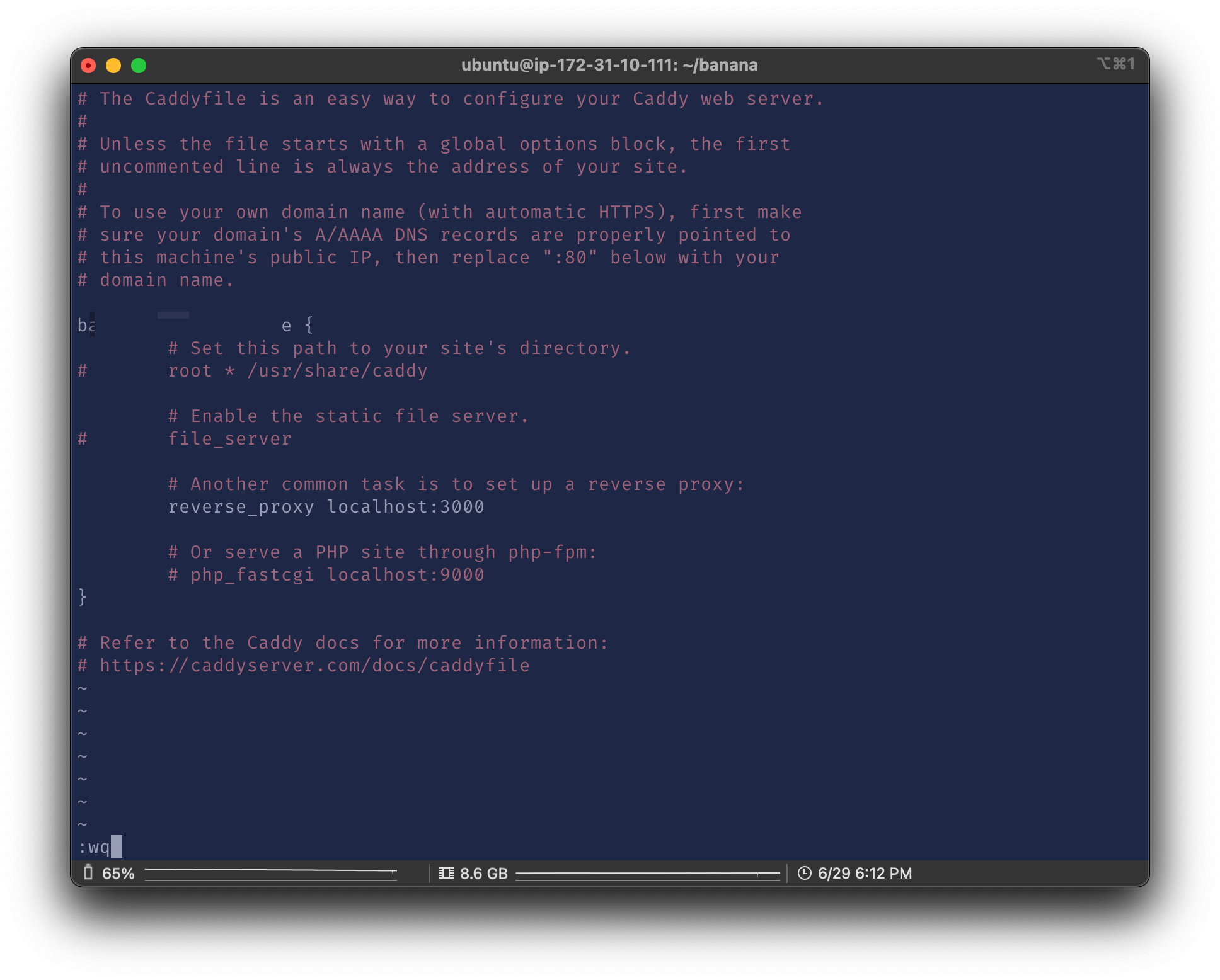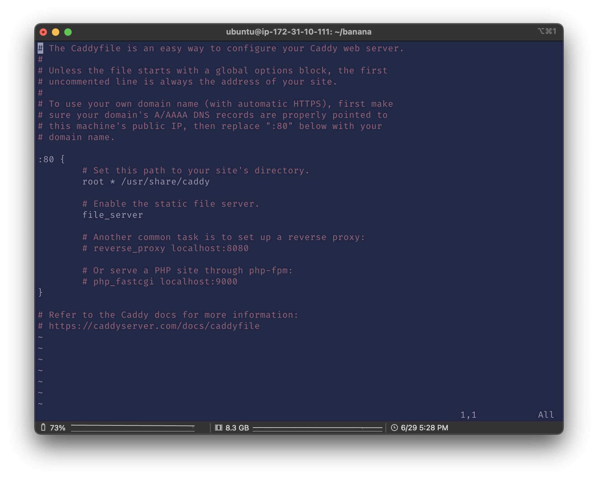 $ sudo vim /etc/caddy/Caddyfile
